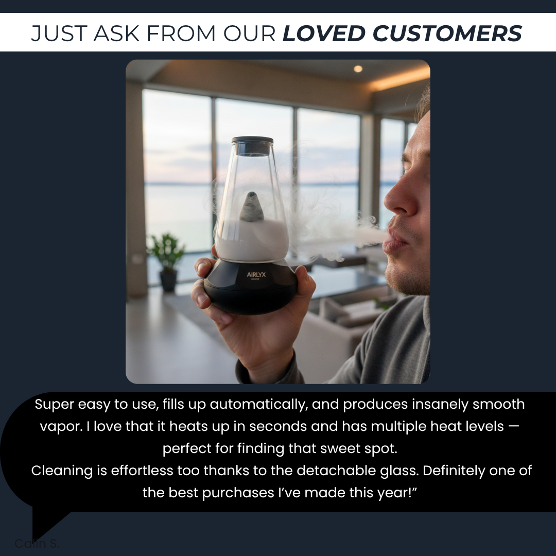“Airlyx™ is on another level. The automatic fill is genius — no mess, no guessing, just perfect vapor every time. It heats up so fast, I barely wait before enjoying it.”